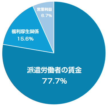 派遣労働者の事業主として負担する労災保険、雇用保険、厚生年金保険、健康保険等の社会保険料や教育訓練の実施の費用、総じて15.6%となります。